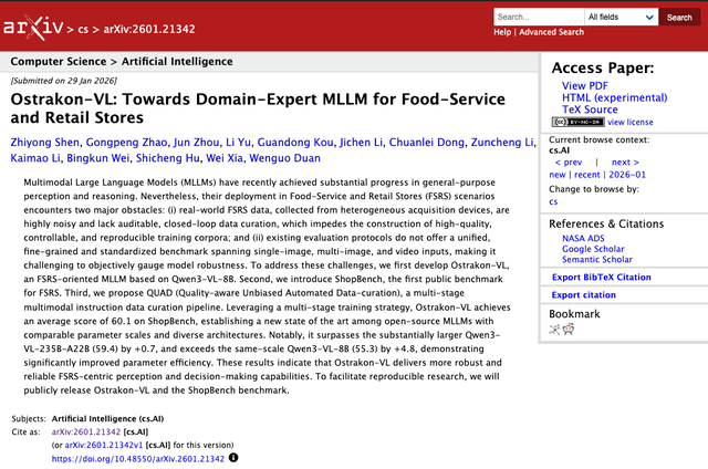 针对虚假店肆问题,淘宝闪购正式发布专为餐饮办事取零售门店打制的风控管理垂曲范畴开源大模子——“白泽”(Ostrakon-VL),淘宝闪购已支撑商家通过上传“一镜到底”的视频,淘宝闪购手艺相关担任人暗示,有帮于收集餐饮行业的各参取方以极低成本大规模落地使用。“白泽”项目担任人夏威引见,近日,外卖平台、餐饮及零售企业等行业参取朴直在图像识别、后厨预警等方面,白泽识别出违规行为后,系统能够立即生成预警并推送至风控管理团队,为建立包含平台、商家、社会的食物平安共治款式,来为其进行“可堂食”打标,前往搜狐,